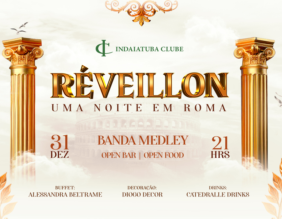Inspirado na elegância e no charme da capital italiana, o Réveillon IC – Uma Noite em Roma promete uma noite completa, com boa música, gastronomia refinada e muita alegria para celebrar a chegada de 2026 em grande estilo.